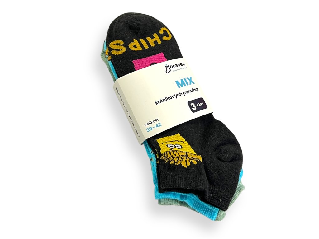 3 PÁRY Barevné veselé kotníkové bavlněné ponožky - jemné a prodyšné
