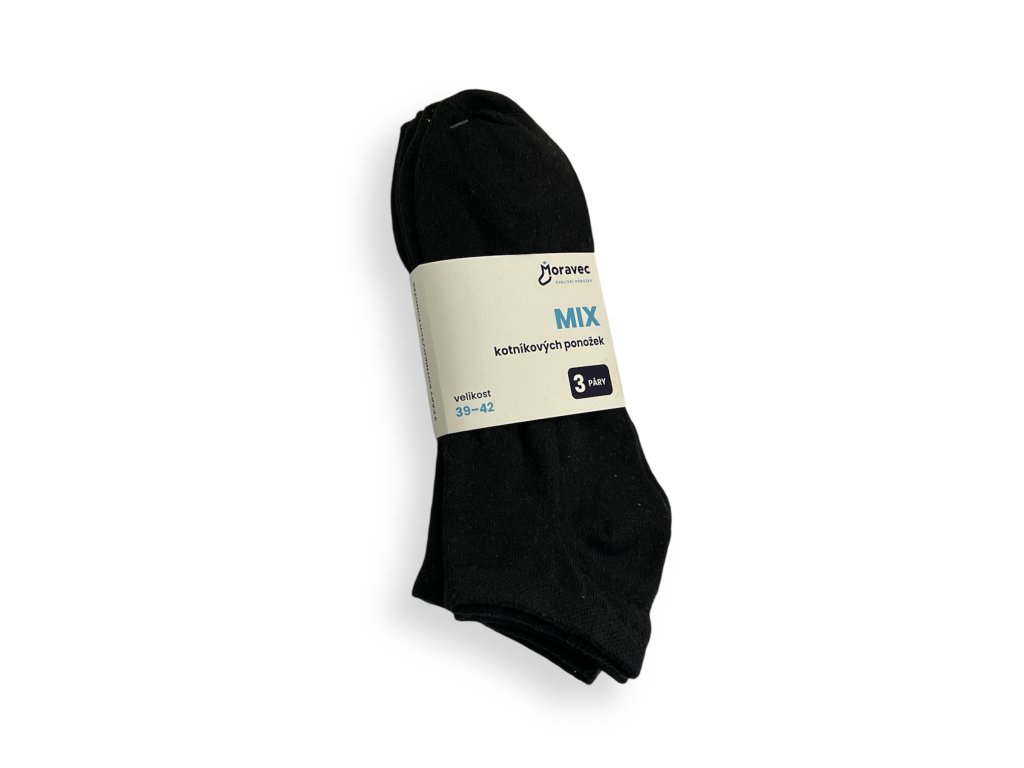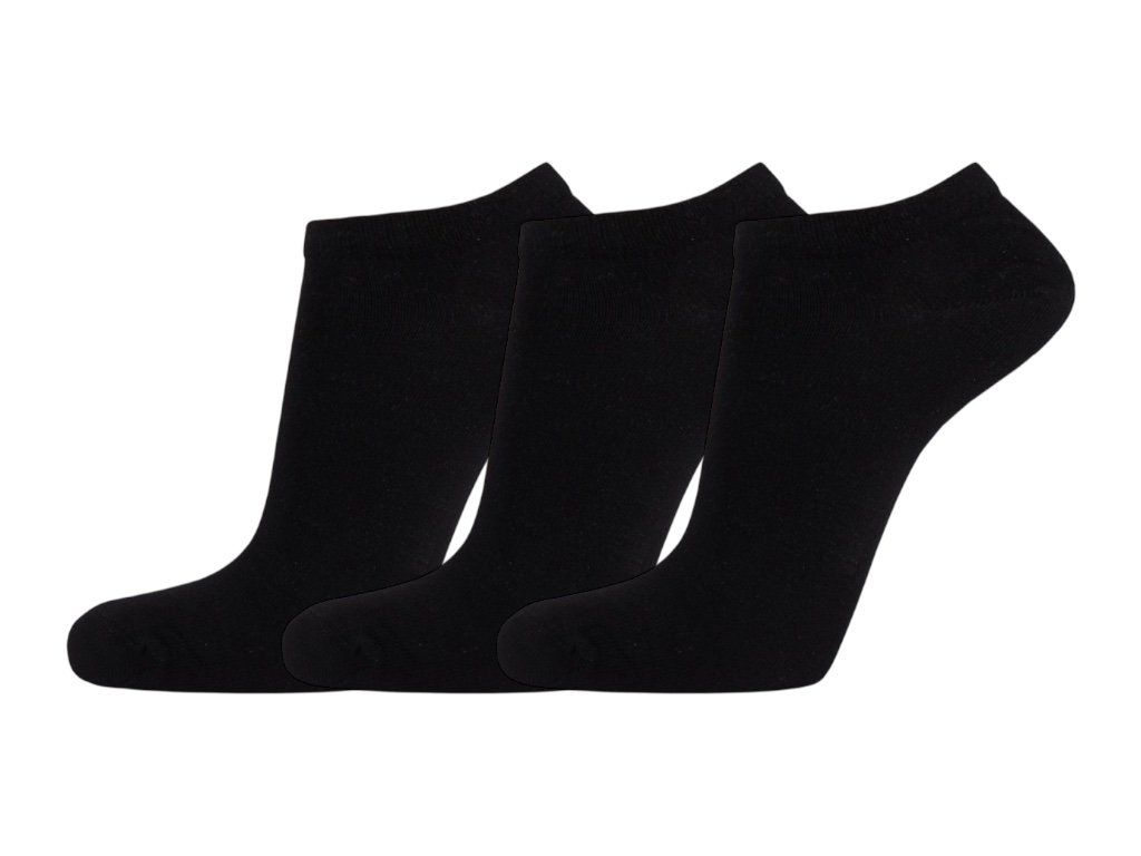 3 PÁRY Černé bavlněné kotníkové ponožky - jemné a prodyšné