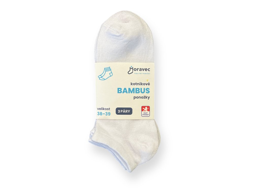 3 PÁRY Bílé bambusové kotníkové ponožky - prodyšné a antibakteriální