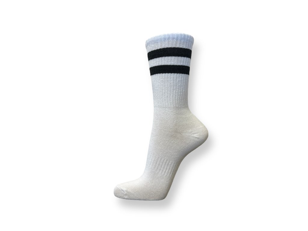 Retro ponožky v černém a bílém provedení s kontrastním proužkem čerpají inspiraci z historie sportovní módy. Jsou vyrobené z kvalitní bavlny, díky které jsou příjemné, prodyšné a vhodné pro každodenní nošení.