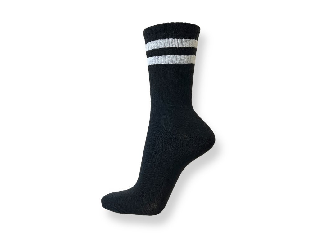 Retro ponožky v černém a bílém provedení s kontrastním proužkem čerpají inspiraci z historie sportovní módy. Jsou vyrobené z kvalitní bavlny, díky které jsou příjemné, prodyšné a vhodné pro každodenní nošení.