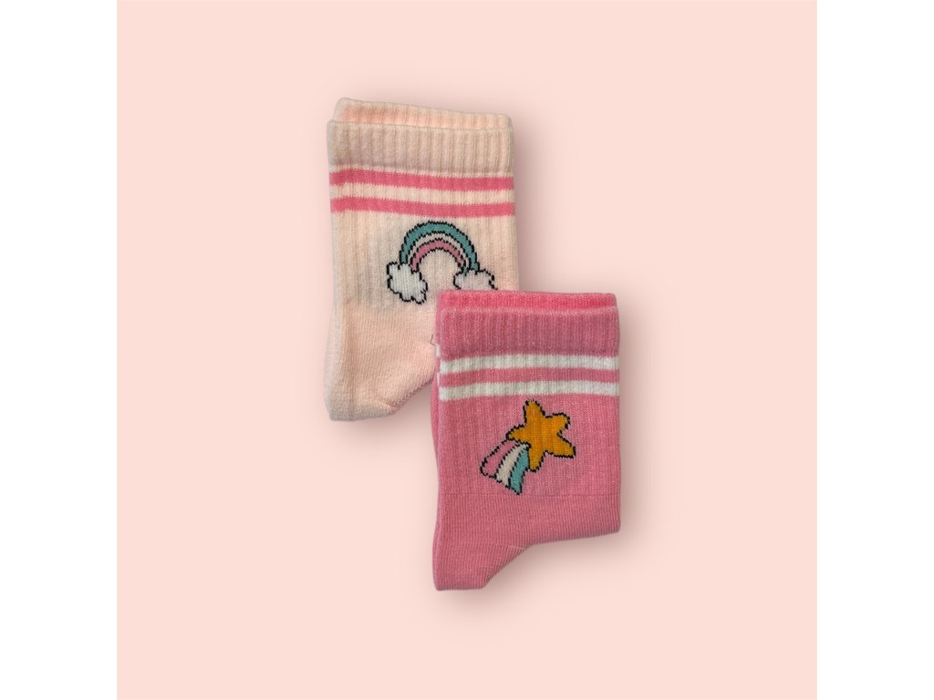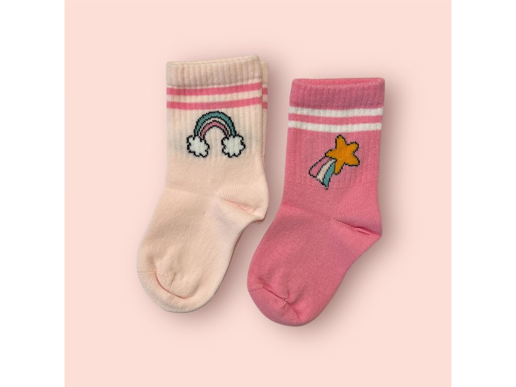 Dětské bavlněné ponožky 2 páry - motiv hvězdy a duhy