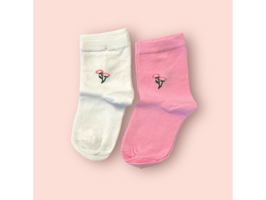 Dětské bavlněné ponožky 2 páry - motiv květin bílá a růžová