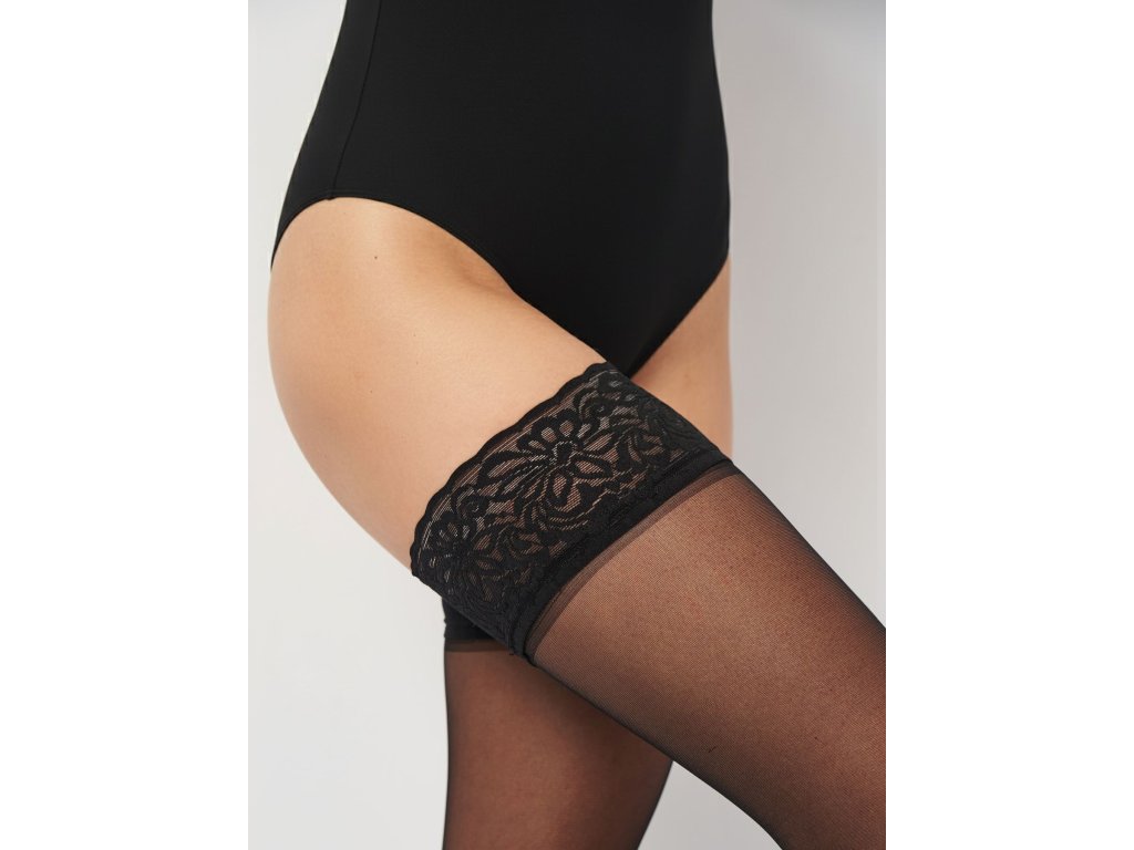 Silonkové punčochy samodržící s krajkou EVELINE 20 černé