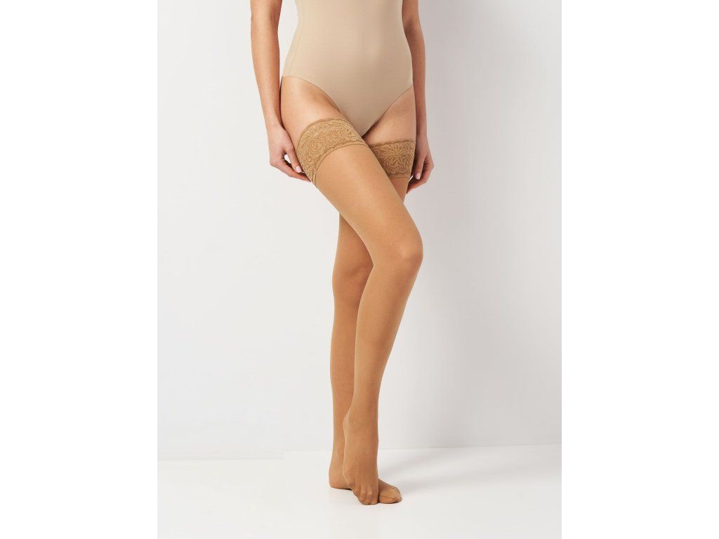 Silonkové punčochy samodržící s krajkou EVELINE 20 tělové